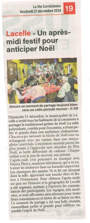 Article de la Vie Corrézienne du 27/12/2024