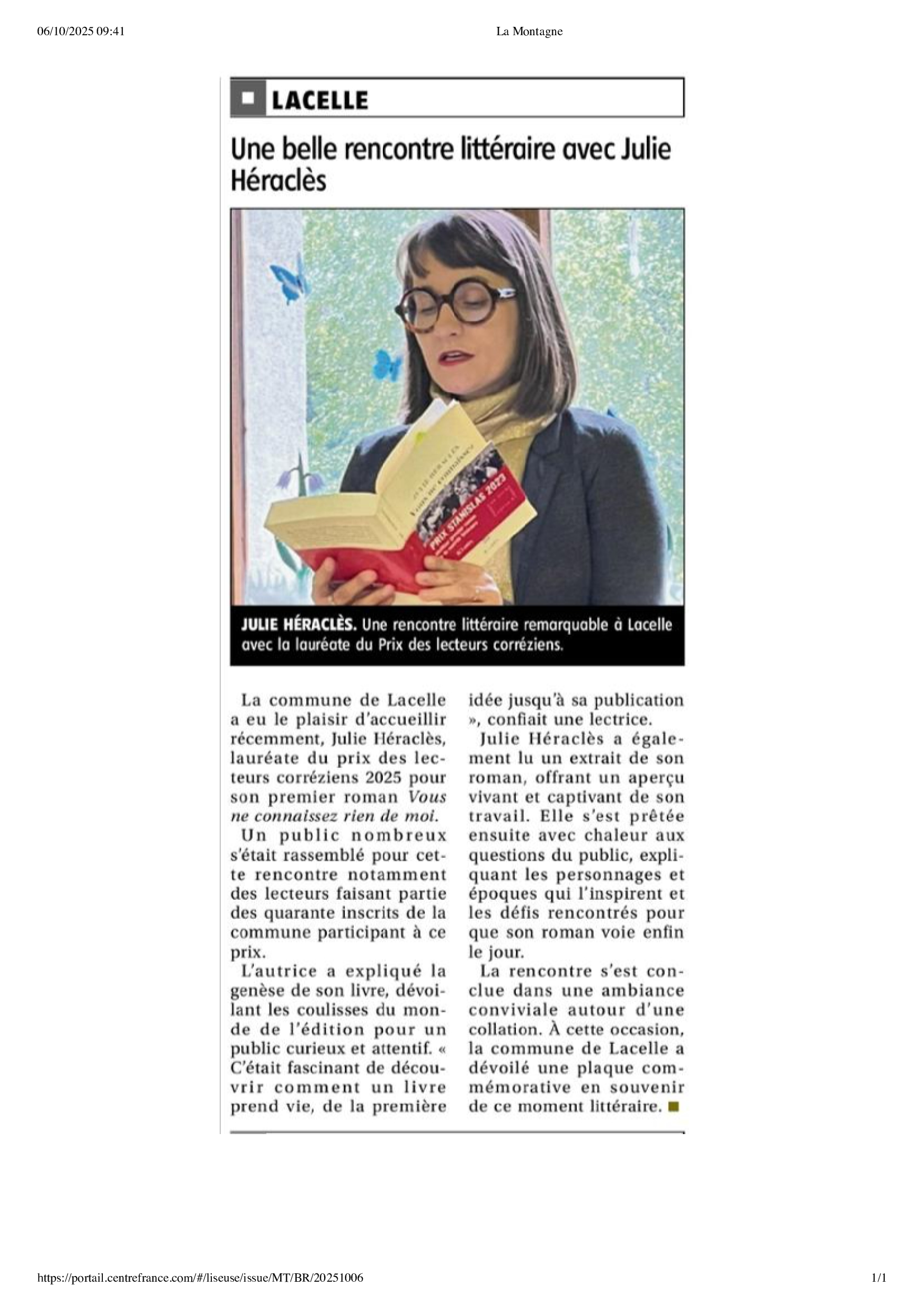Article de La Montagne du 06/10/2025
