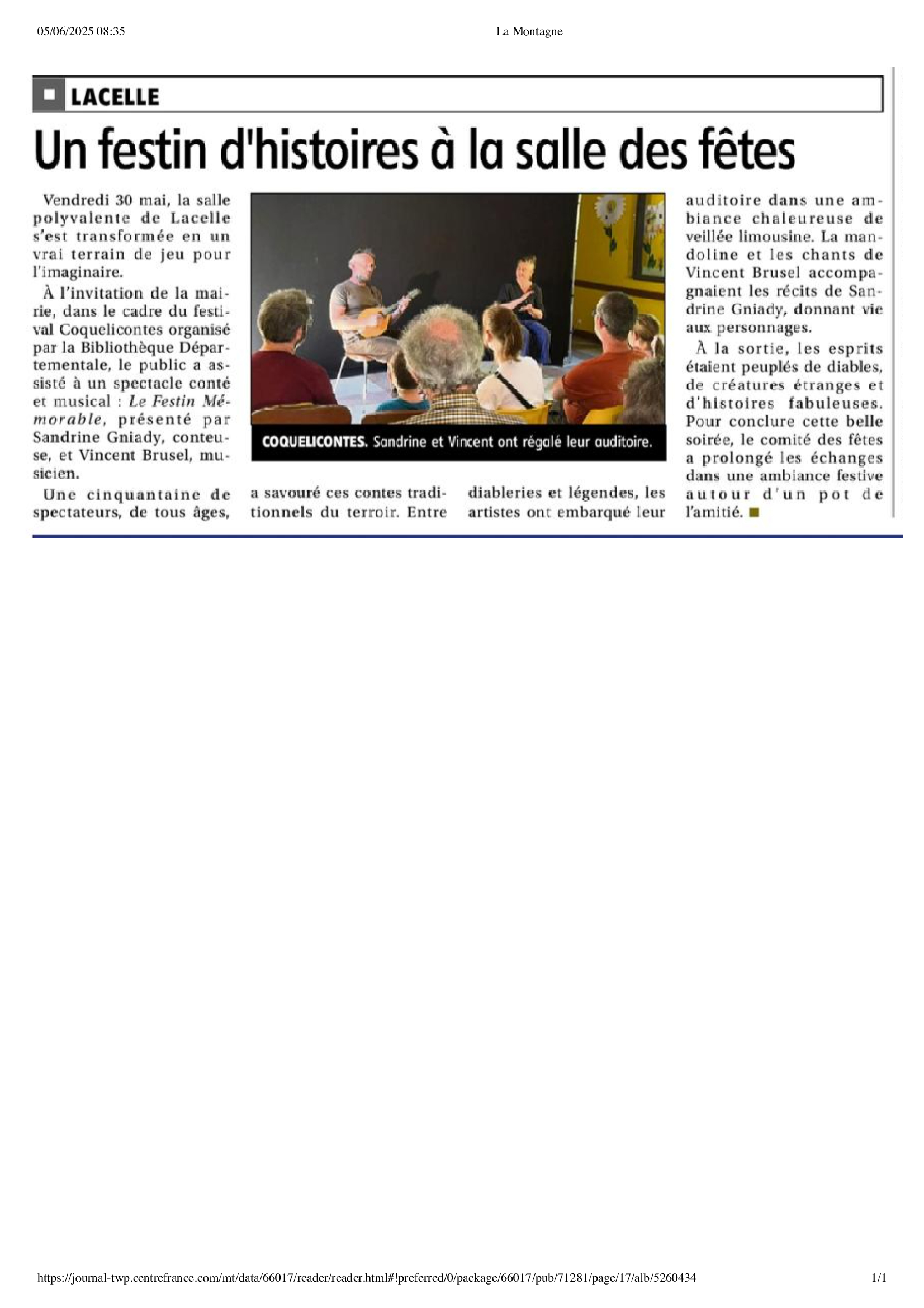 Article de La Montagne du 05/06/2025