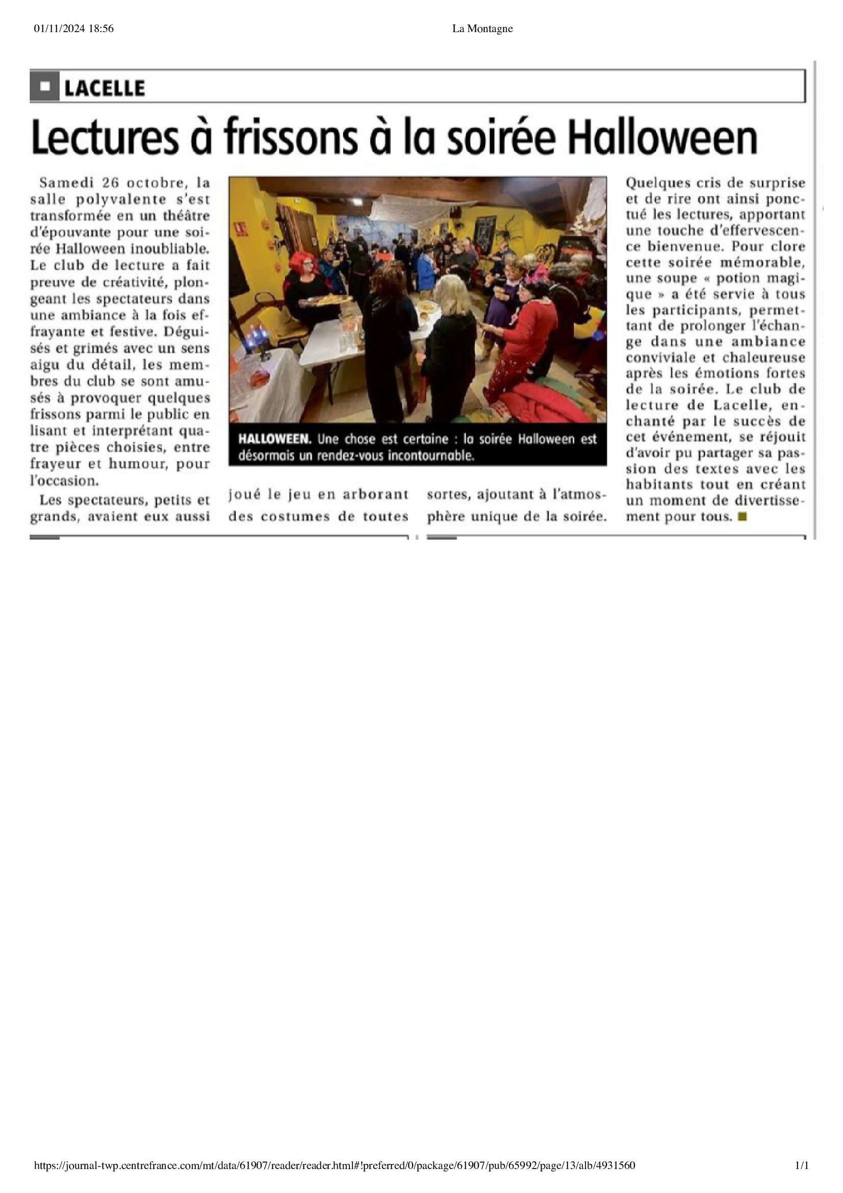 Article de La Motagne du 01/11/2024